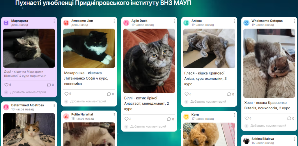 Пухнасті улюбленці ПІ МАУП! Сьогодні День кота в Європі, і ми не могли оминути це свято! Наші студенти та викладачі діляться фото своїх котиків. Свайпай і знайомся з нашими хвостатими талісманами удачі! По посиланню побачиш більше, або додавай свого котика : https://padlet.com/kimaupkravtsovaio/padlet-tcvnn6fvgwxpcihy Цікавий факт: науково доведено, що годинка з котом знижує стрес та покращує концентрацію. Ідеально для студентів перед сесією! Також сьогодні день доброти! Якби кожний з нас допоміг притулку, або врятував котика чи собачку – світ став би добрішим Ділись доброю справою чи фактом про свого котика у коментарях!